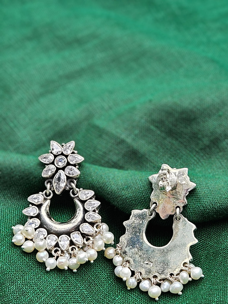 Chandbali Silver Zircon Earrings, Indian 925 Silver Earring