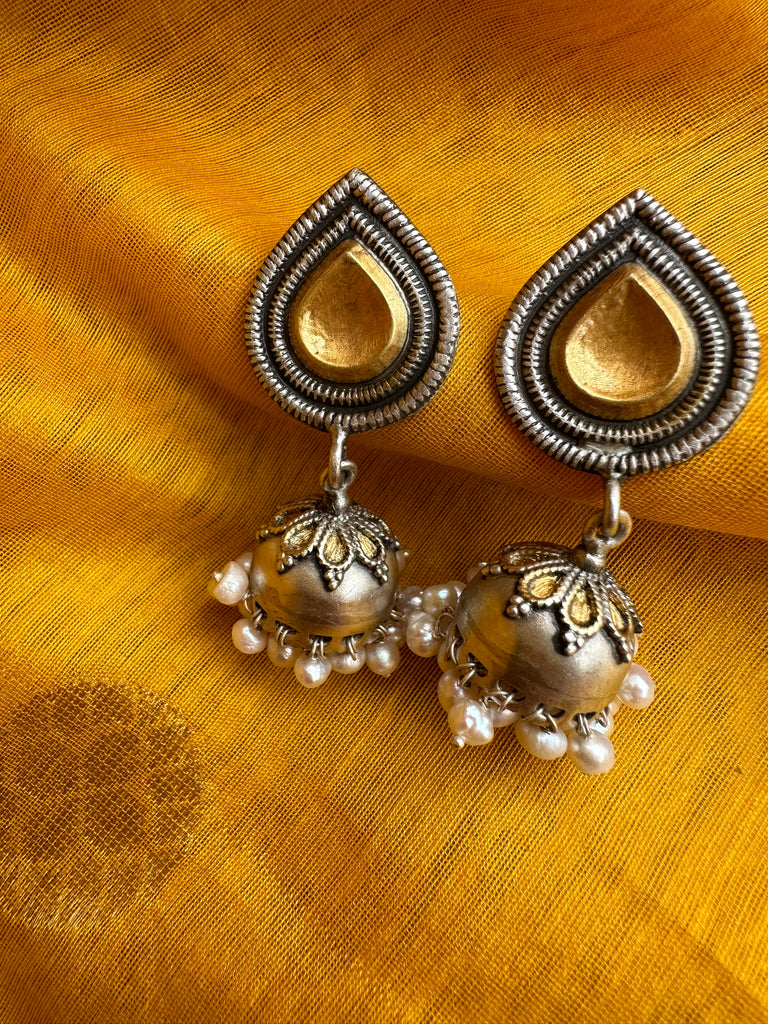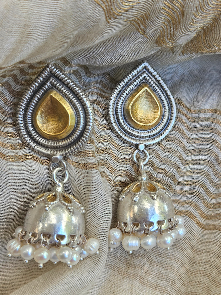 Abha - Gold plated 925 Sterling silver dual tone Jhumka Earring