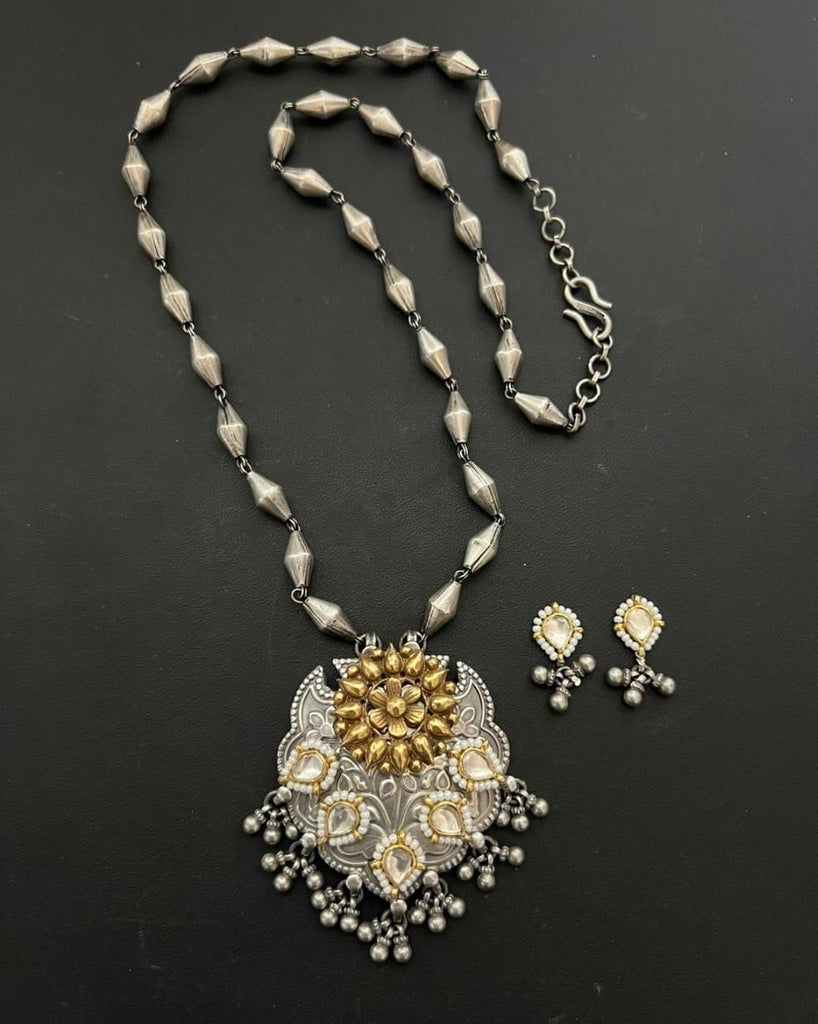 🔹Material : 92.5 Sterling Silver, Hallmark Stamped, Gold Plated(only gold flower motif on top is 80 % silver rest all necklace is 92.5% pure silver)